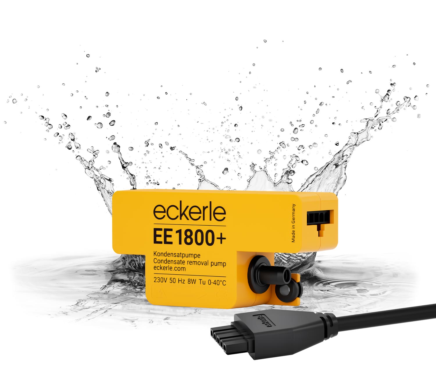 Die EE1800+ ist eine Mini-Kondensatpumpe, die für Klimageräte mit einer Leistung von bis zu 20 kW ausgelegt ist. Sie arbeitet mit einem leisen Geräuschpegel von unter 22 dB(A) gemäß DIN EN 3744 und bietet eine platzsparende, ultra-kompakte Lösung zur Kondensatförderung.
