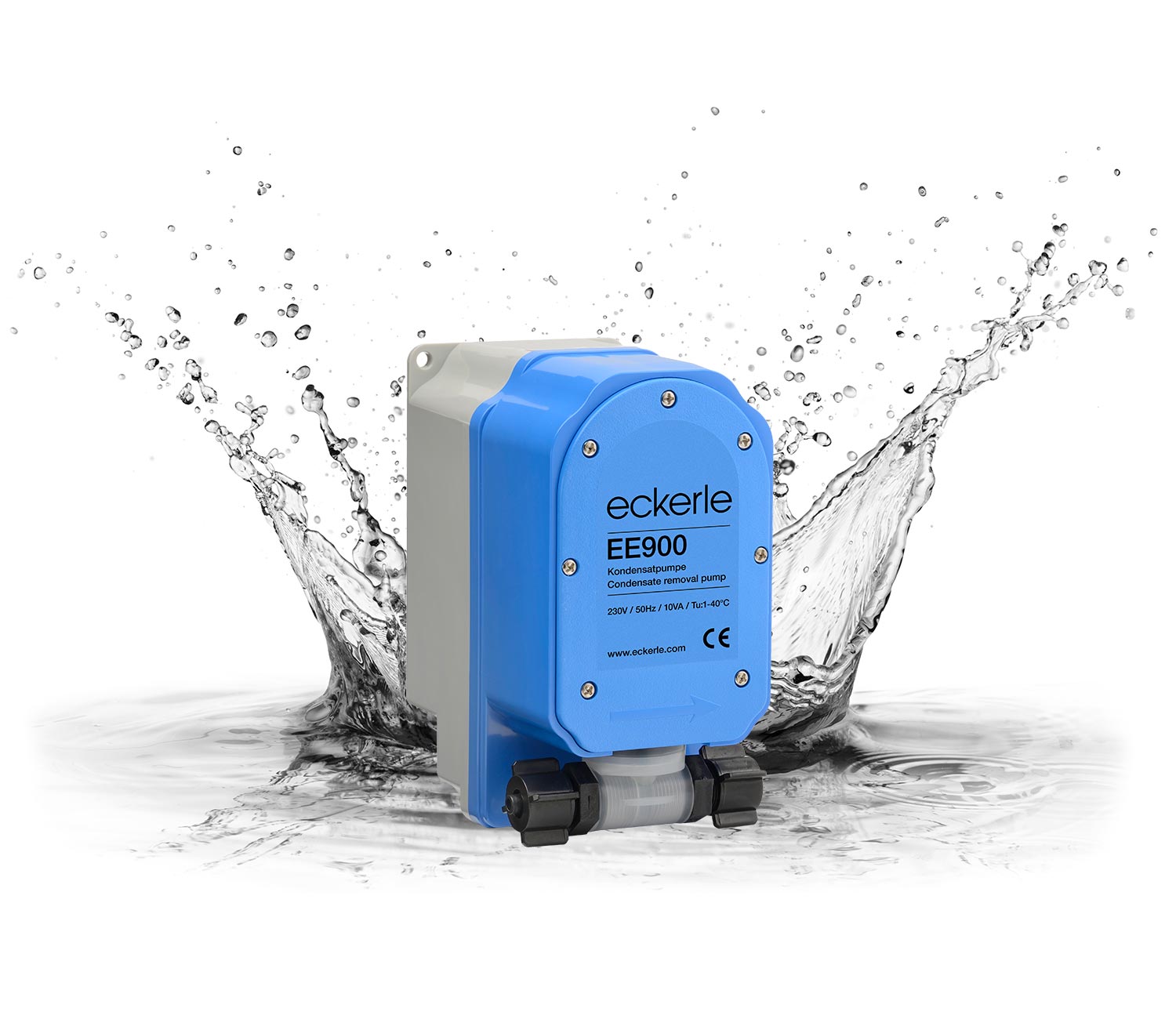 Die flüsterleise und patentierte EE900 wird zum Transport von Kondensat insbesondere in geräuschsensiblen Umgebungen wie Hotelzimmern oder Schlafzimmern eingesetzt. Im Gegensatz zu herkömmlichen Schlauchpumpen entfällt das lästige Wechseln teurer Schläuche, da die EE900 nach dem Prinzip einer Kolbenpumpe arbeitet. Die sehr langsame Bewegung des Kolbens sorgt für sensationell leise Geräuschemissionen. Unabhängig von der maximalen Förderhöhe liefert die Pumpe eine annähernd konstante Förderleistung.